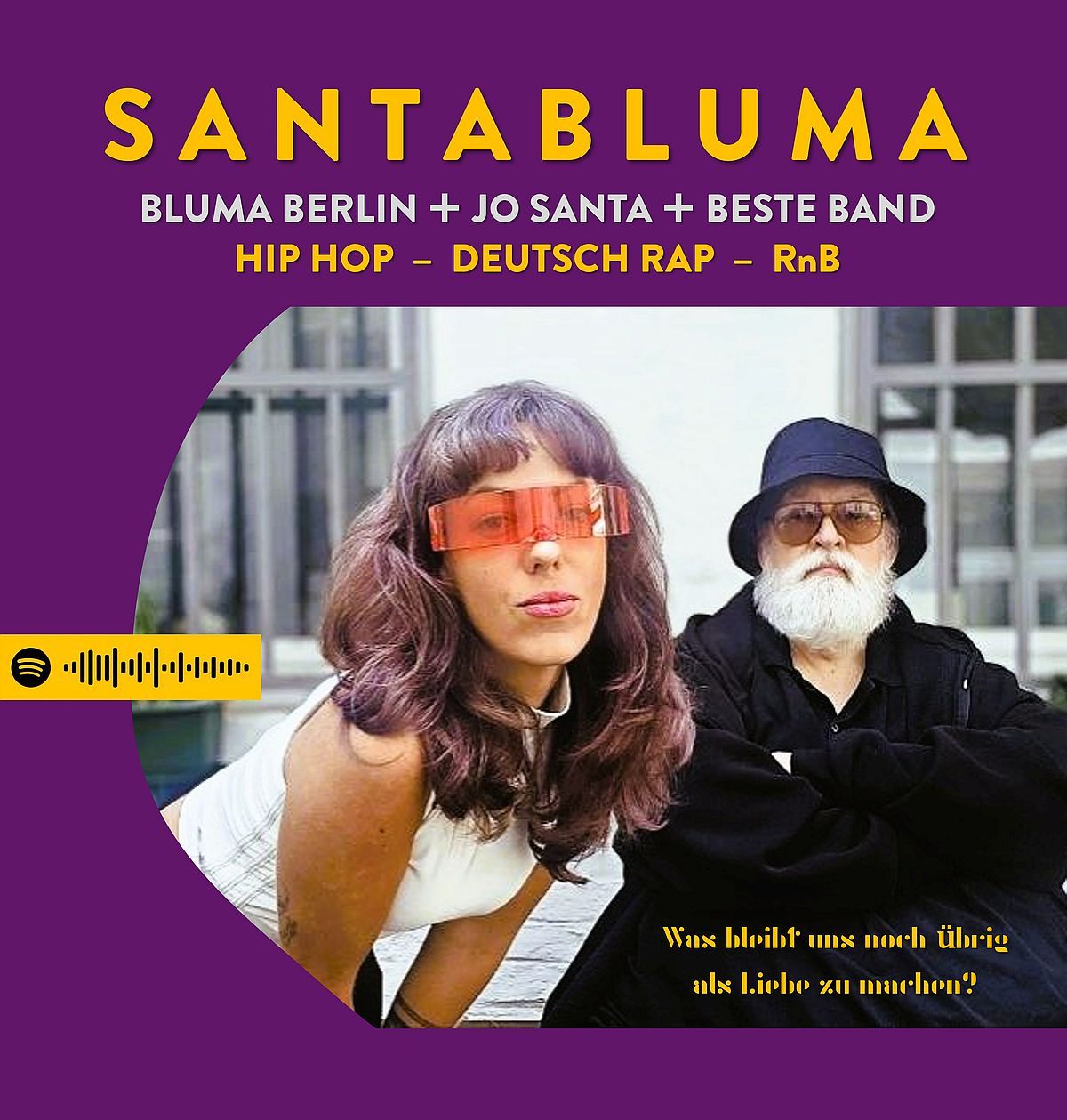Bluma ist das Wort. Jo spielt die Tunes. Der Rap kommt von Bluma. Erzählt vom Blues der Einsamen, Gestrandeten, Sehenden. Sie malt fantastische Bilder von Träumen und Sehnsucht. Jo bringt den Jazz, die coolen Vibes und den tiefen Groove. Das verbindet: Bluma + Jo, dich und mich, euch und uns.